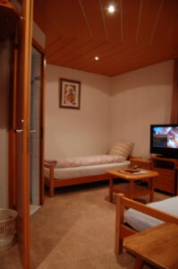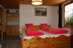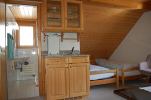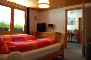 Unser grosses Familienzimmer verfügt über 6 Bett in 2 getrennten Räumen. Einen Grossen Wohnraum zum Spiele machen und ein geräumiges Bad.